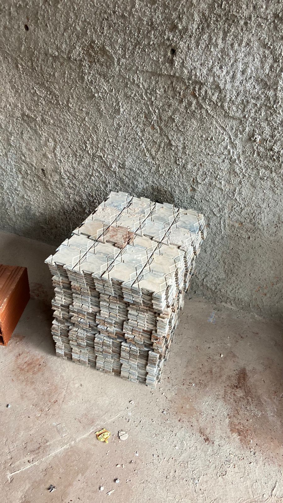 Não utiliza adesivo, a fixação ocorre pelo peso da peça e pela geometria intertravada.
